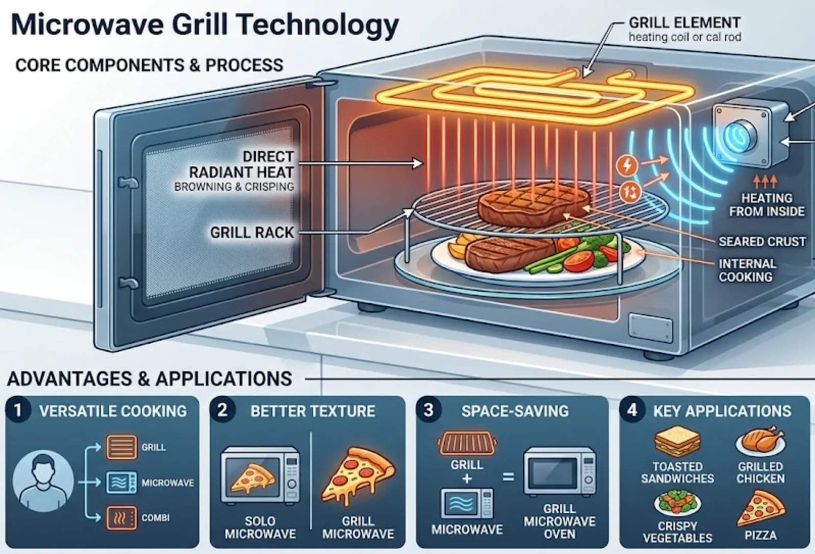 How Does Microwave Grill Technology Convert Electromagnetic Waves into Thermal Conduction?
